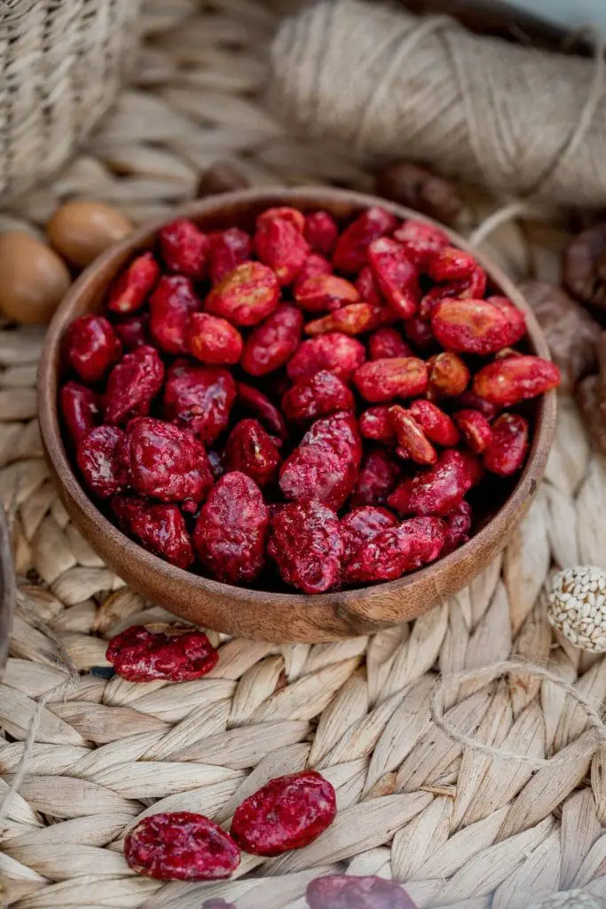 Sus frutos tienen un sabor ligeramente agridulce y una consistencia algo seca.