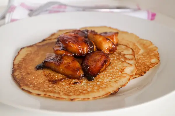 - Retira los plátanos caramelizados del fuego y sírvelos junto con las deliciosas tortitas.